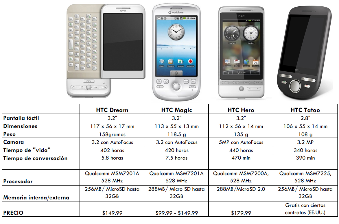 Esta compañía taiwanesa nos ofrece varios modelos que utilizan el Android. HTC tiene sólidas capacidades de investigación y desarrollo y durante los últimos dos años, ha sido de las compañías con más alto crecimiento en el sector móvil. HTC fue el primero en incursionar en el mercado de Android y le ha ido bastante bien.